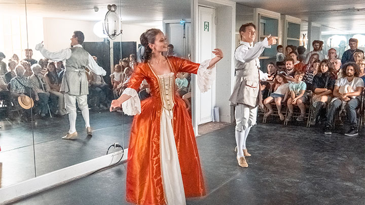 La Sérénade Royale de la Galerie des Glaces : les samedis d’été, avant la manifestation des Grandes Eaux Nocturnes, les danseurs et musiciens baroques accompagnent le public dans sa découverte des Grands Appartements du Château de Versailles jusqu’à la Galerie des Glaces.
