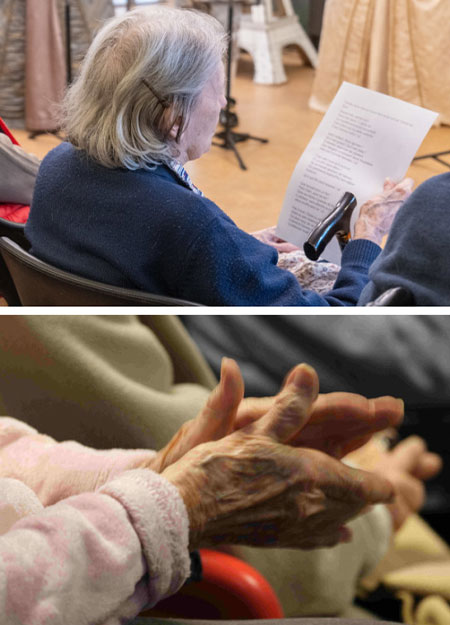 Les artistes invitent les résidents à chanter des airs traditionnels de Noël.
