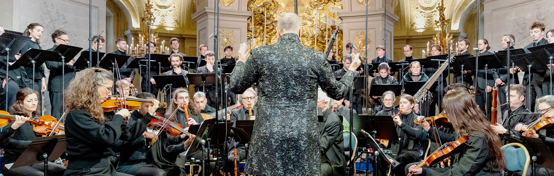 Passionné de la musique de Charpentier, auquel il a consacré une dizaine de disques avec Le Concert Spirituel depuis bientôt quarante ans, Hervé Niquet a décidé de faire revivre ses œuvres sacrées. Et quel luxe ! En recréant aujourd’hui un concert que seul Louis XIV avait les moyens de produire à l’époque, Le Concert Spirituel et le Centre de musique baroque de Versailles ravivent le faste de Versailles en convoquant la musique romaine et italienne de Charpentier. Avec un octuor de solistes, un double orchestre et un double chœur, cette trilogie mobilise soixante-trois artistes à l’unisson. Et le chef nous prévient : « il faut être un peu fou pour faire ça, pour reproduire ce rendu acoustique d’exception, qui fait communiquer le Ciel et la Terre. Je travaille Charpentier depuis longtemps et je le comprends aujourd’hui très rapidement, je déchiffre sa mathématique : quand on est attentif à son rythme et à sa métrique, la musique surgit d’elle-même. »